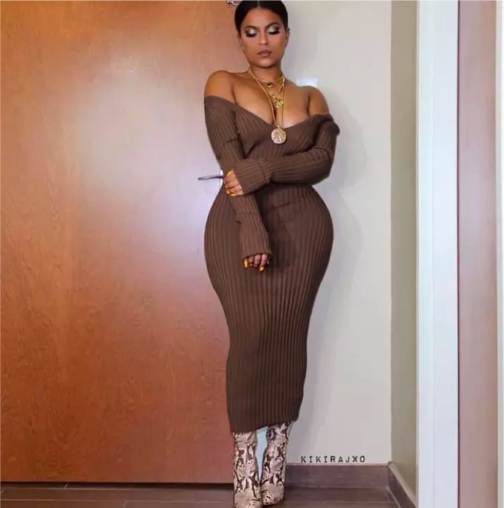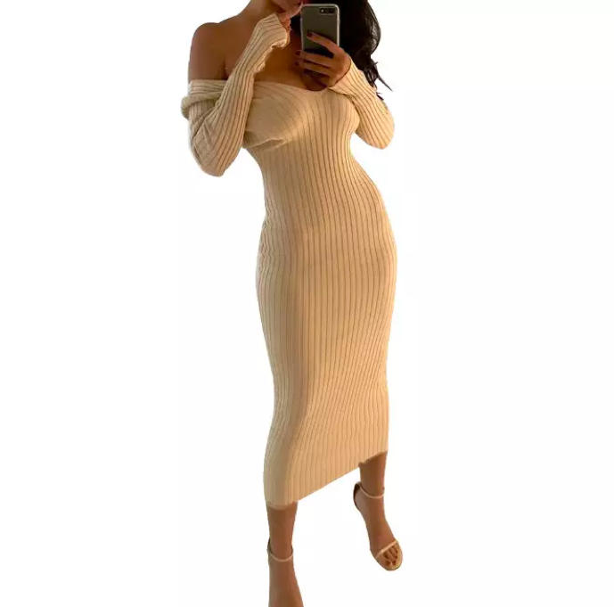 Off The Shoulder Long Sleeve Sweater Dress